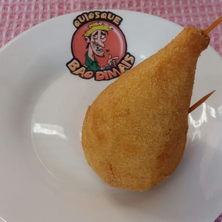 A famosa e deliciosa coxinha massa de mandioca, recheada de costela com queijo.