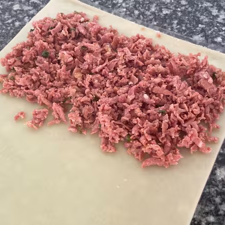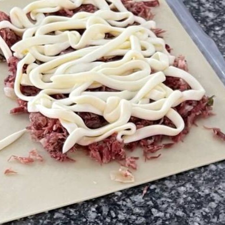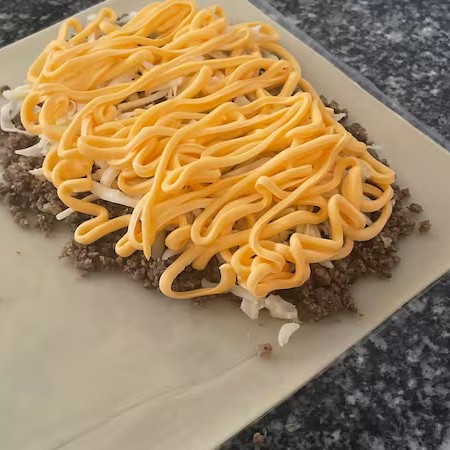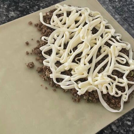 Carne moida, queijo mussarela, mais um creme a sua escolha. (Requeijão, Cheddar ou Cream-Cheese)