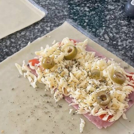 Presunto em dobro, queijo em dobro, tomate, azeitona, oregano, mais um creme a sua escolha. (Requeijão, Cheddar ou Cream-Cheese)