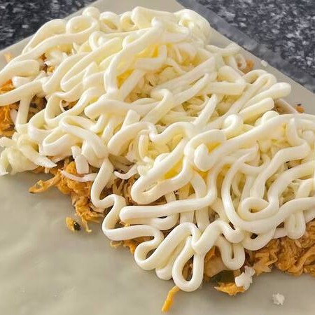 Frango desfiado, queijo mussarela, mais um creme a sua escolha. (Requeijão, Cheddar ou Cream-Cheese)