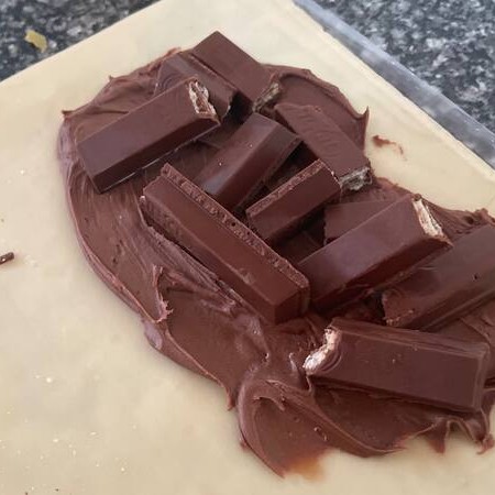 Base de chocolate ao leite fornéavel com uma barra de Kit Kat