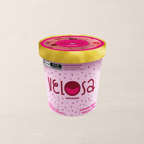 Sorvete de morango com pedaços selecionados da fruta dando um toque de frescor ao sabor.