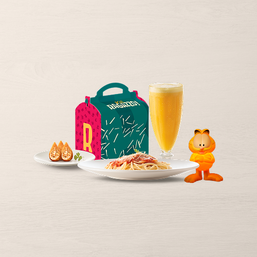 O Kit supergostoso do Ragazzo acompanha 1 espaguete + 3 mini coxinhas + 1 Suco + 1 Surpresa*.
