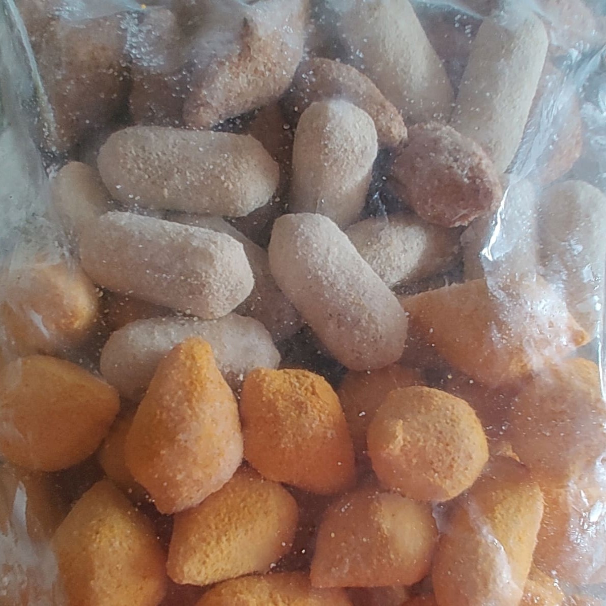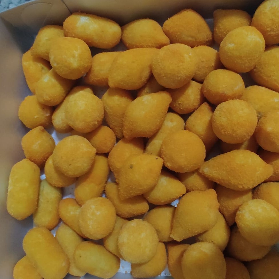 50 unidades de 20gr preparados com massa de mandioca e recheio de frango com requeijão Pronto para fritar