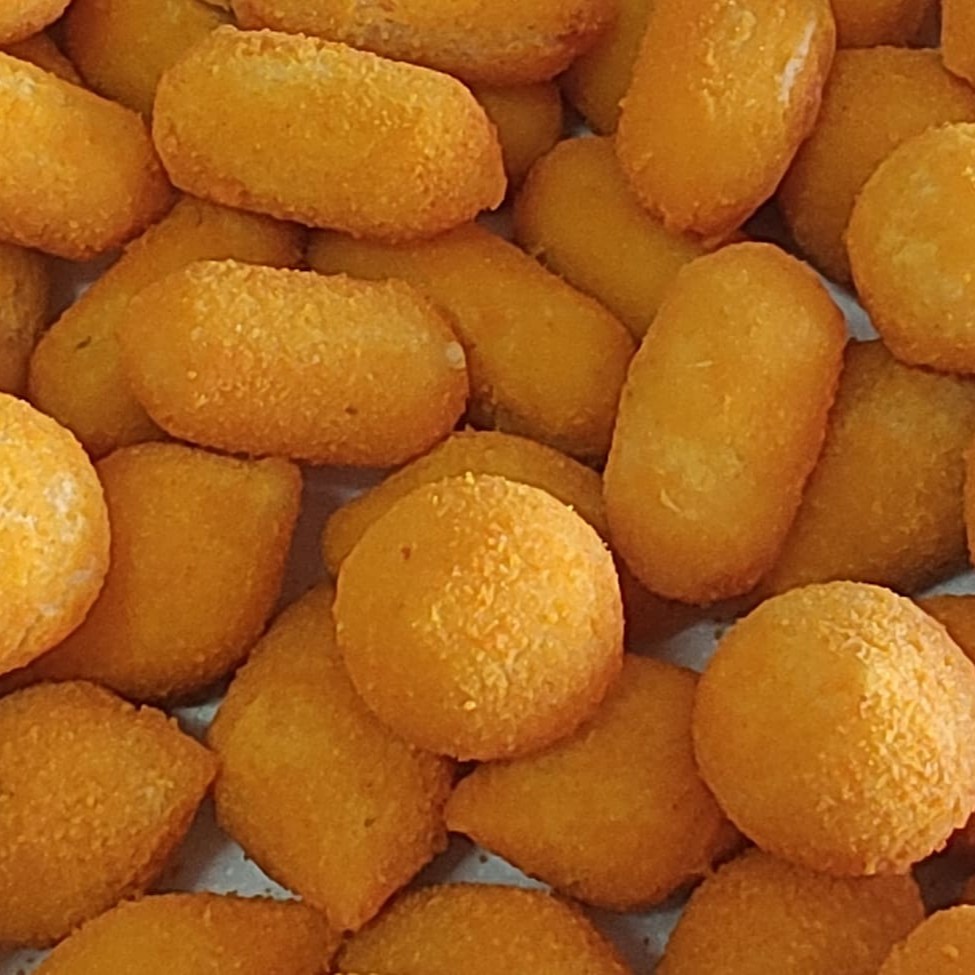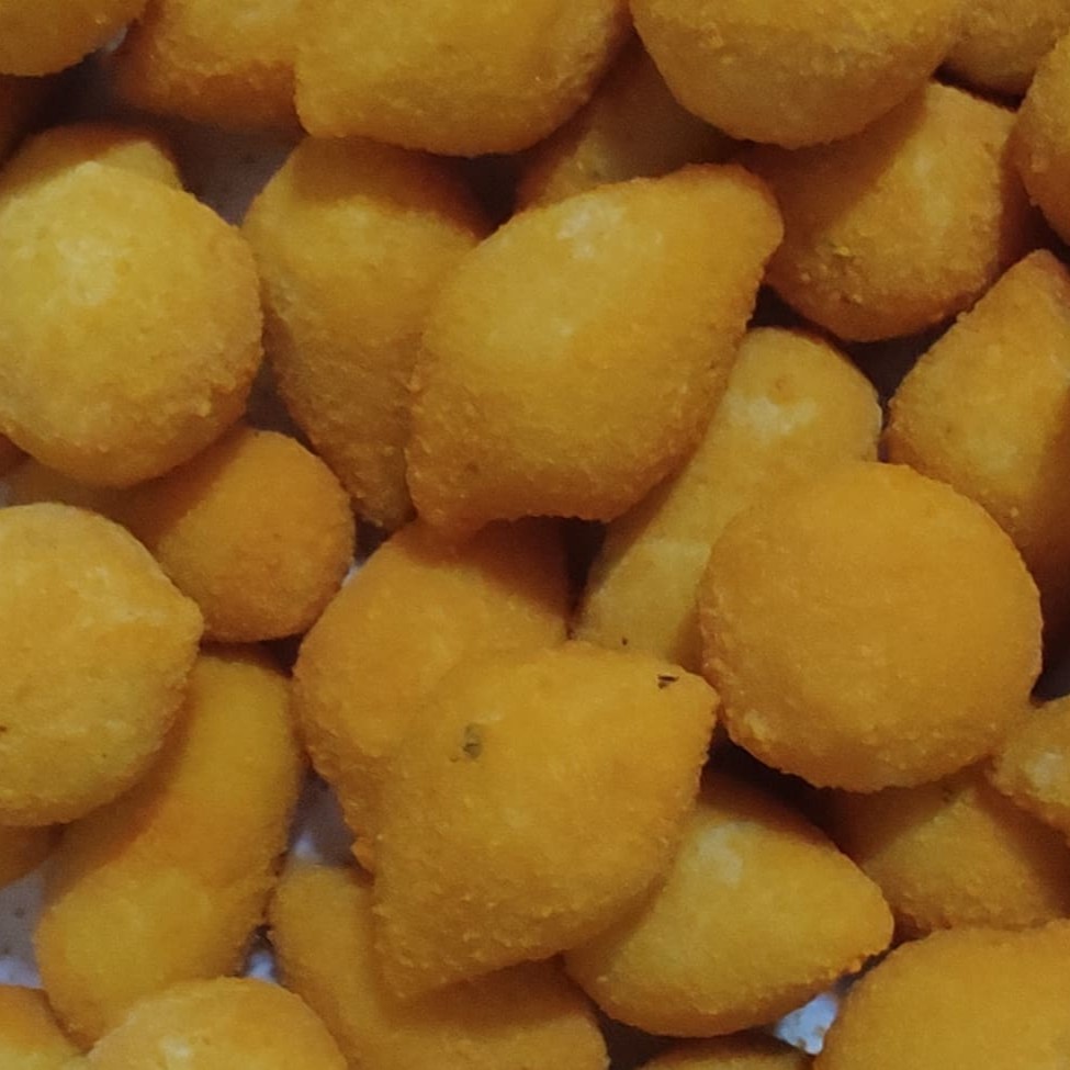 Salgados de 20gr preparados com massa de batata misto sabores (carne, presunto e queijo, bolinha de queijo, frango com requeijão)