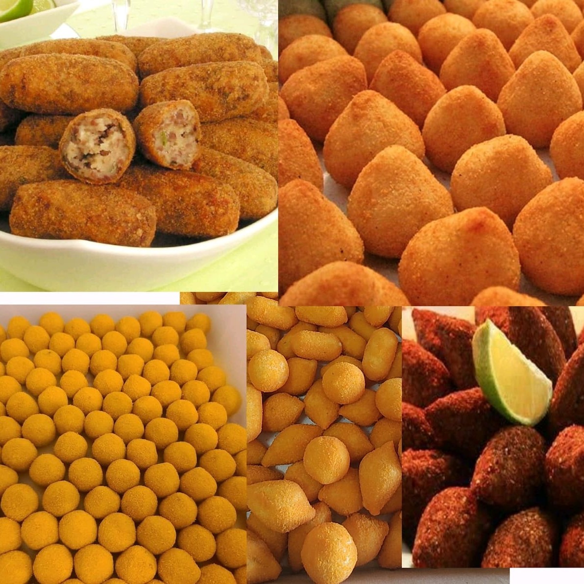 Salgados de 20gr congelados pronto para fritar (20kibe+20 croquete de carne+20 coxinha de frango+20 bolinha de queijo+ 20 presunto e queijo)