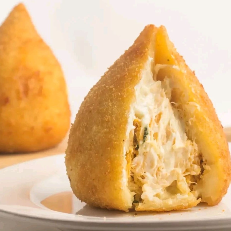50 unidades de Salgados de 20gr preparados com massa de batata e recheio de frango com requeijão Pronto para fritar