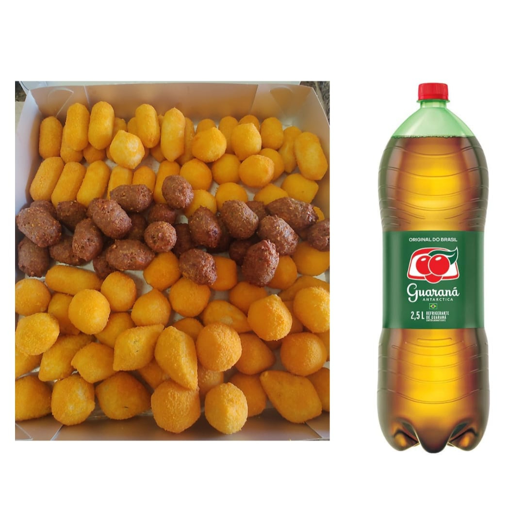 150 unidades de salgados de 20gr fritos, com sabores a sua escolha e + 1 refrigerante guaraná antártica 2,5lt gelado!