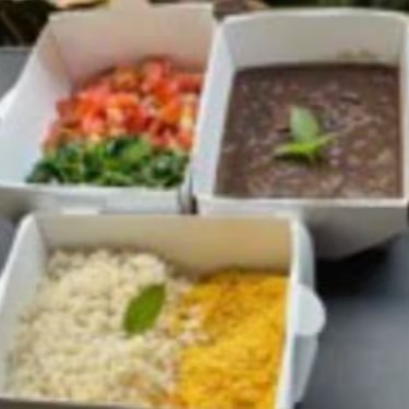 Congelado de Feijoada vegana, acompanha Arroz Integral Orgânico, Farofa e couve refogada.(vegano, sem lactose, sem glúten) Descongelar em temperatura ambiente e colocar no forno ou microondas para esquentar.