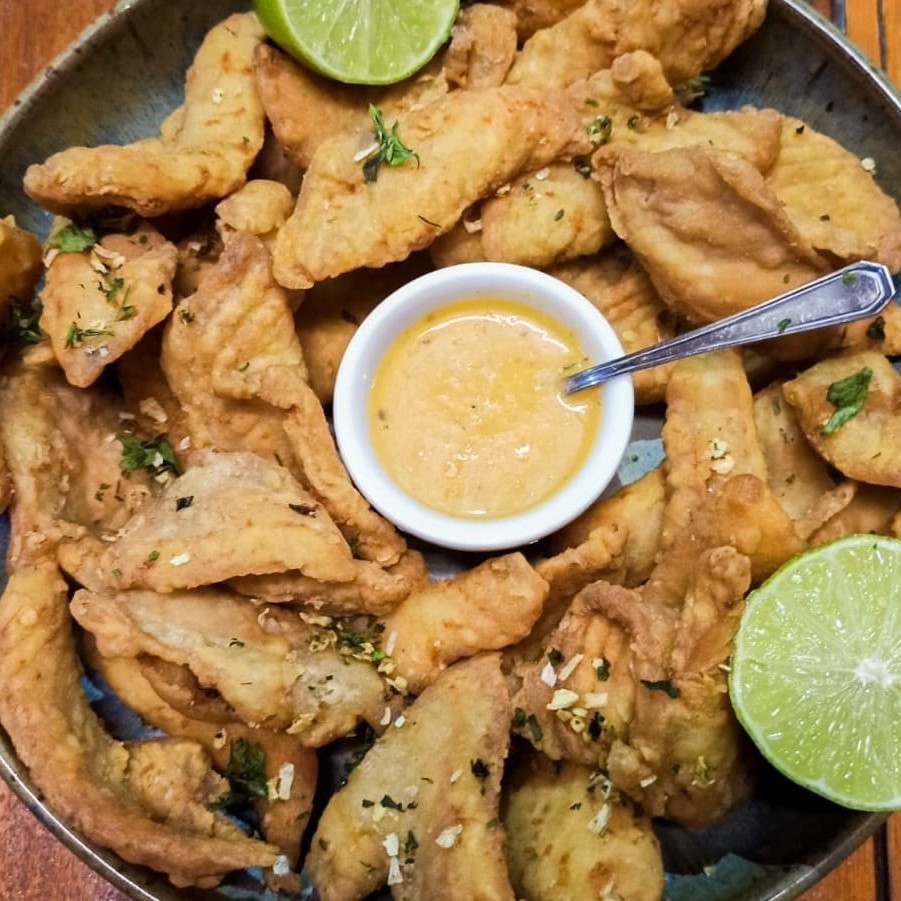 300 gr de costela de tambaqui empanados e acompanhados de molho de alho ou de alfavaca (segundo disponibilidade).