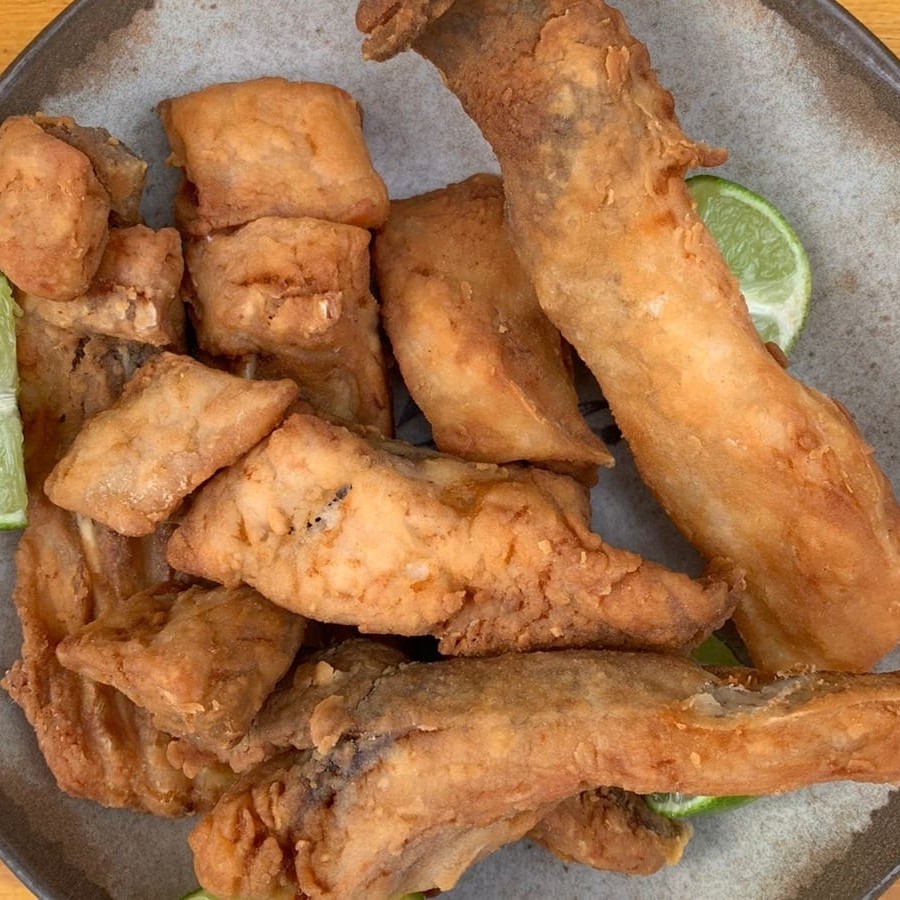 Porção de 300 gramas de tilápia a passarinho com tempero.