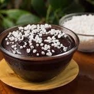 "Creme de açaí ""do grosso"" (aquele que os irmãos do norte tomam: puro, sem adição de água ou de xaropes e emulsificantes) batido com ou sem açúcar. Acompanham farinhas de tapioca ou farinha d´água bragantina."