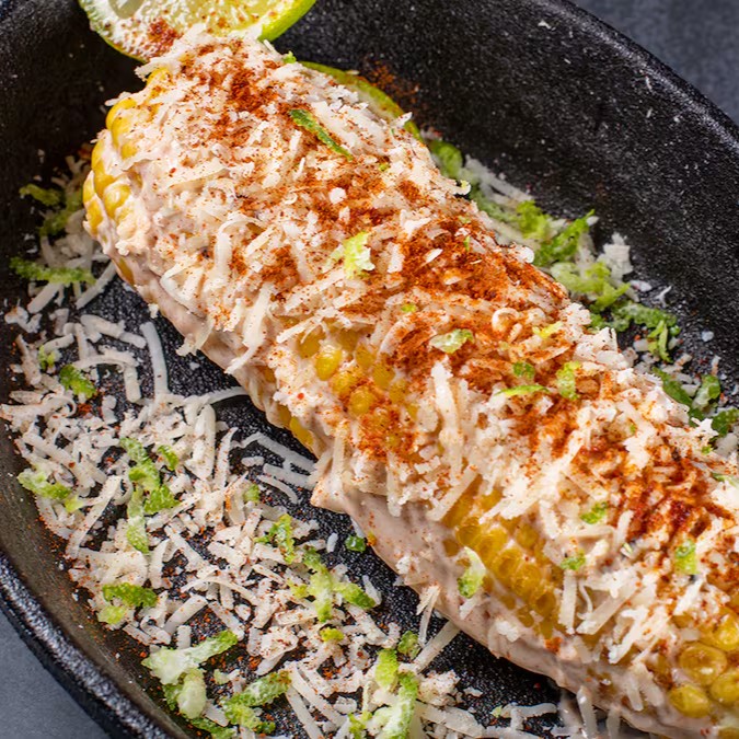 Isso que é uma experiência! Deliciosa espiga de milho grelhada na nossa churrasqueira e servida com queijo parmesão, temperos da casa, manteiga, maionese e toque final com raspas de limão e pimenta caiena.