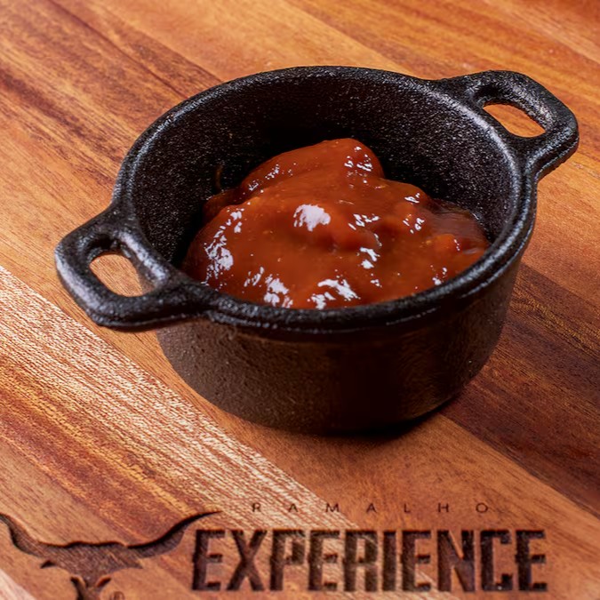 Nosso molho Bbq defumado em lenha de laranjeira, Whisky Jack Daniels, especiarias e goiabada.