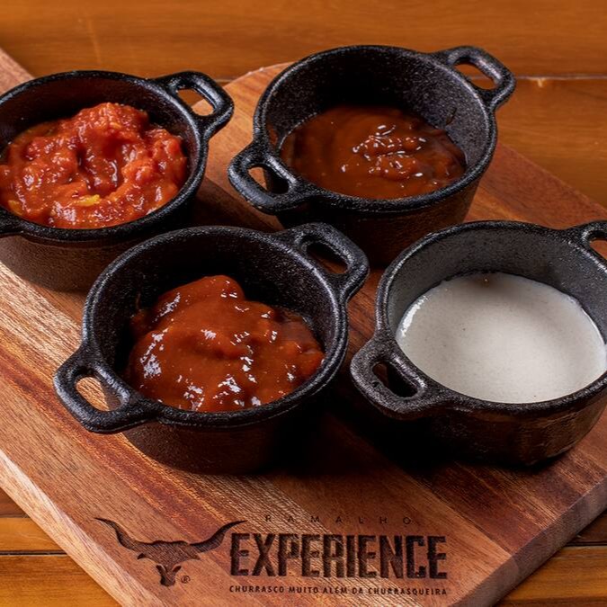 Show de sabores com 50g de Molho Maionese Defumada, 50g de Molho Bbq Defumado, 50g de Molho Bbq Defumado de Goiabada e 50g de Molho Experience.