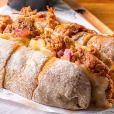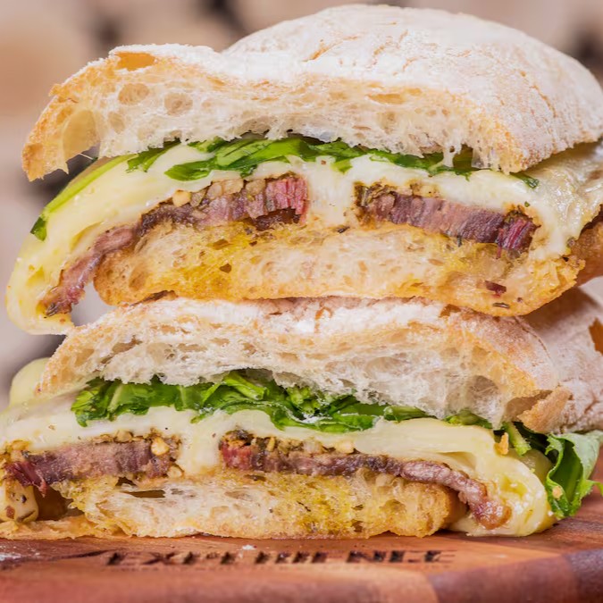Nosso sanduba de rodeio! Pernil desfiado, vinagrete, pão ciabatta de fermentação natural e muçarela. Aproveite essa deliciosa novidade!