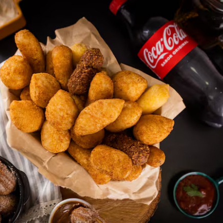 50 salgadinhos irresistíveis e um *Refri Brinde* geladinho para acompanhar ideal para uma refeição leve, uma noite de filme ou um momento gostoso.