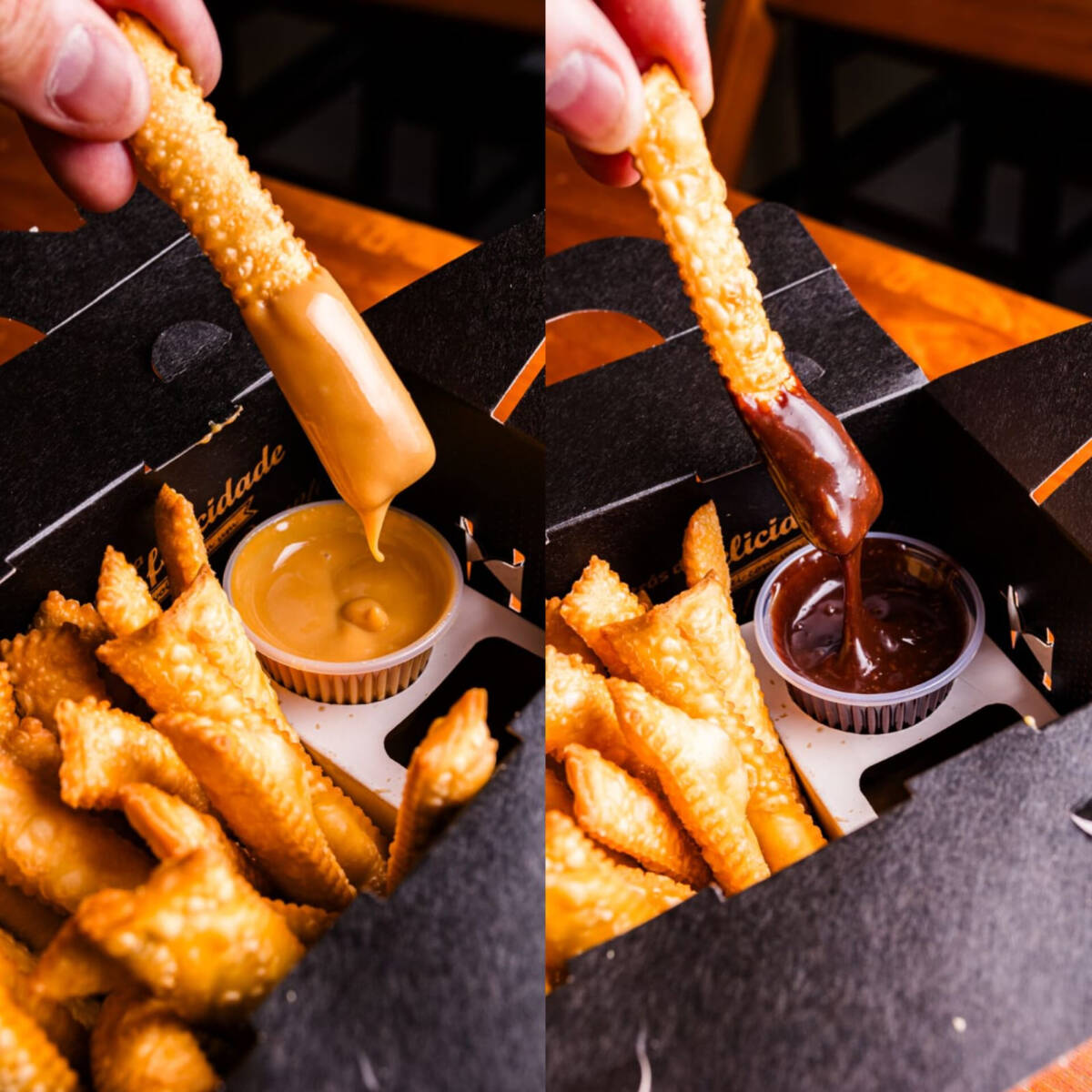 Essa caixa de mini pastéis contém 24 unidades podendo ser escolhido até 2 sabores por caixa, caso queira escolher o mesmo sabor, precisa selecionar 2 vezes o mesmo. Disponível de Segunda a Sábado das 14h30 às 23h00. Domingo até 23:00