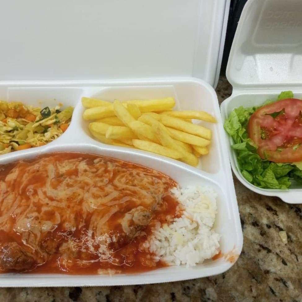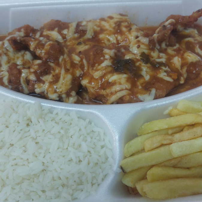 PARMEGIANA DE FRANGO, ARROZ , FRITAS ,