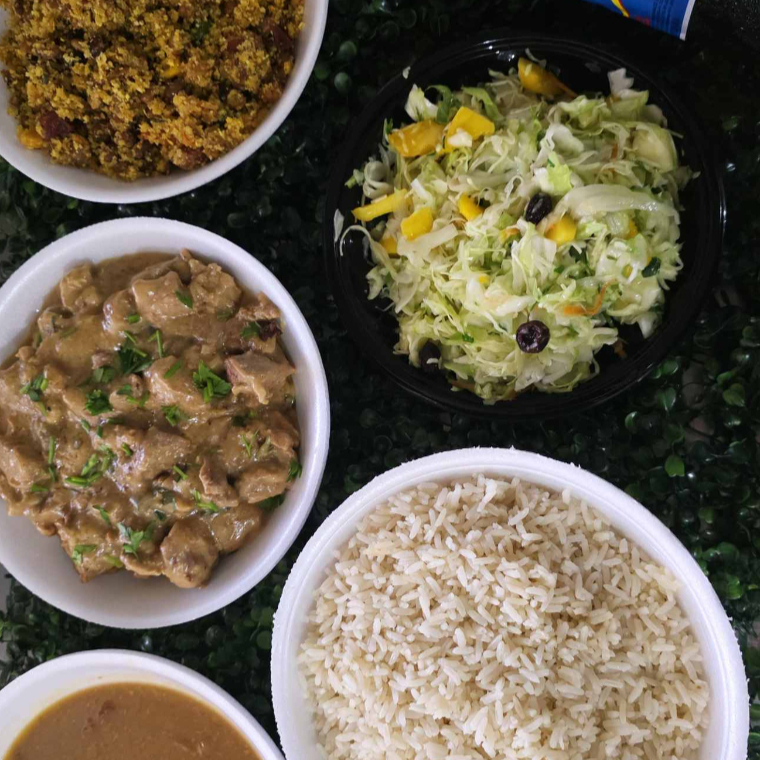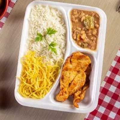 Combo Familia 01 Marmita Grande Arroz Branco 01 Marmita Média de Feijão Carioca 01 Marmita Média de Guarnição 01 Marmita Média de Mistura 01 Marmitex Pequena de Salada + 01 refrigerante 2 litros serve de 03 a 04 Pessoas