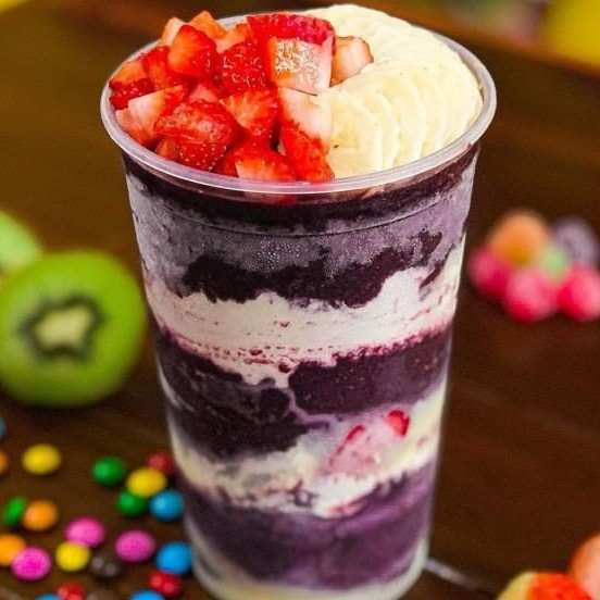 Açaí No Copo 300ml+ Creme De Morango + 5 Adicionajs