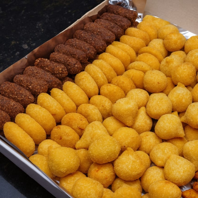 100 Salgados (10g) + 1 Refrigerante Xereta 2l