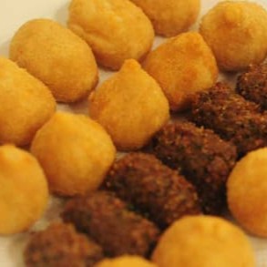 100 Mini Salgados (10gr) + 25 Mini Churros
