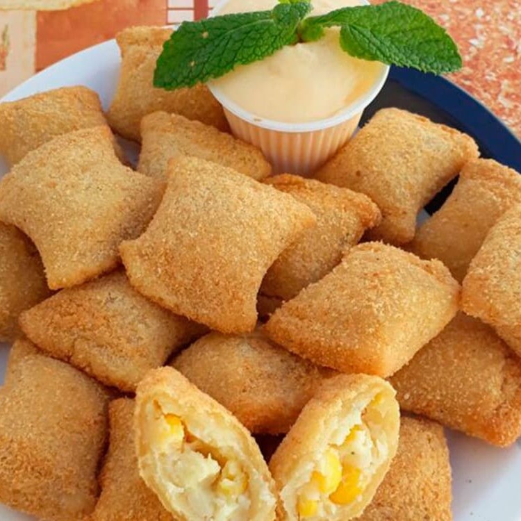 O recheio de milho é suave e irresistível, simplesmente para satisfazer a sua vontade de comer algo realmente saboroso e especial.