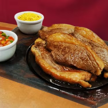 Acompanha pão, patê de alho e vinagrete.