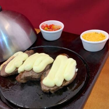 Picanha grelhada coberta com Catupiry Original, Mussarela e Parmesão macia, saborosa e suculenta.