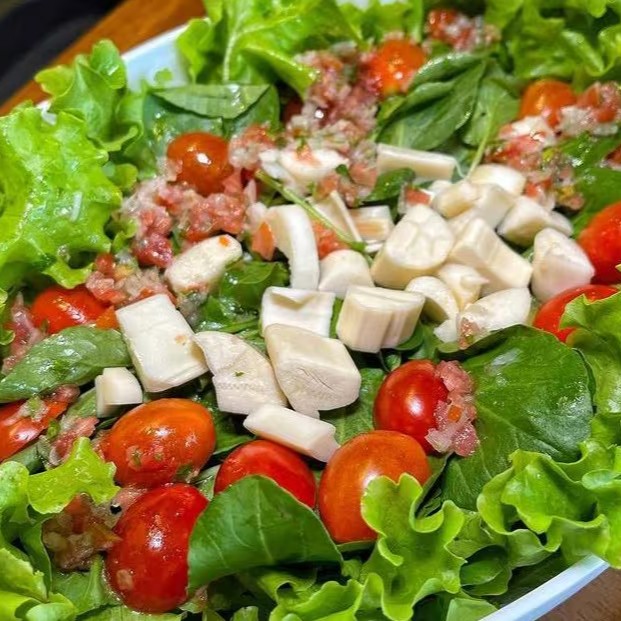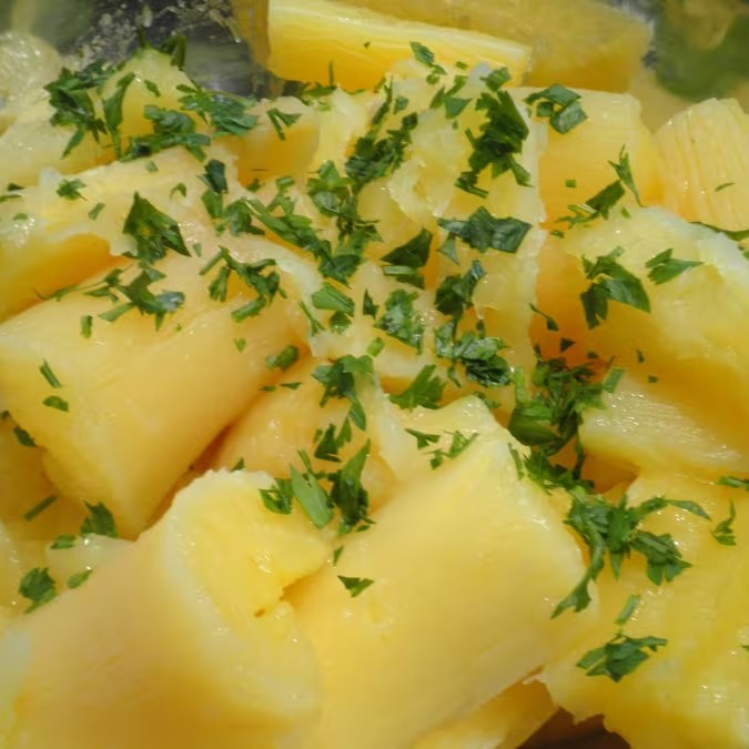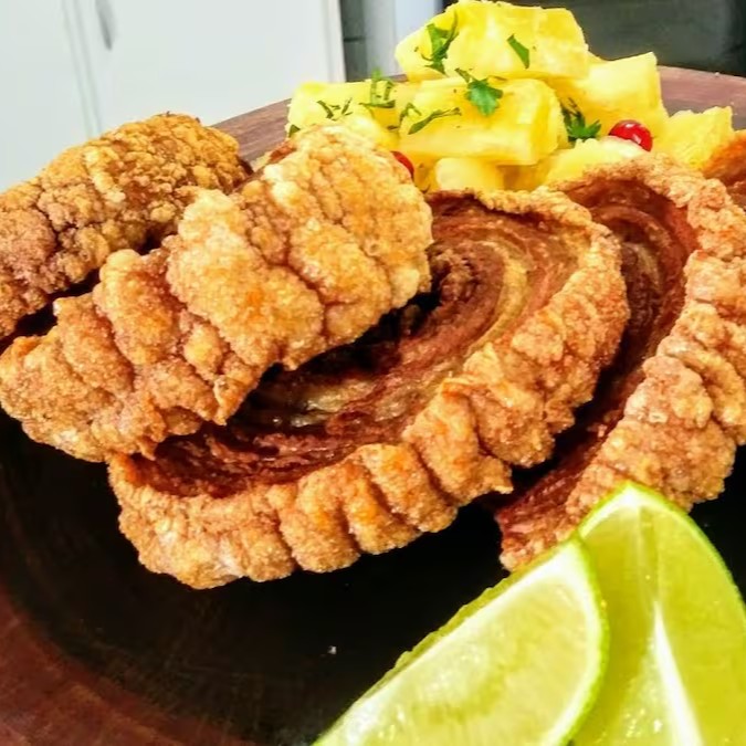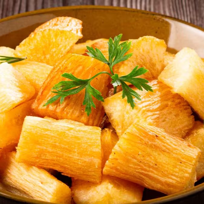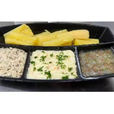 Acompanha: Mandioca cozida, farofa, maionese e vinagrete.
