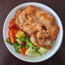 Acompanha arroz, feijão, batata frita e legumes do dia.