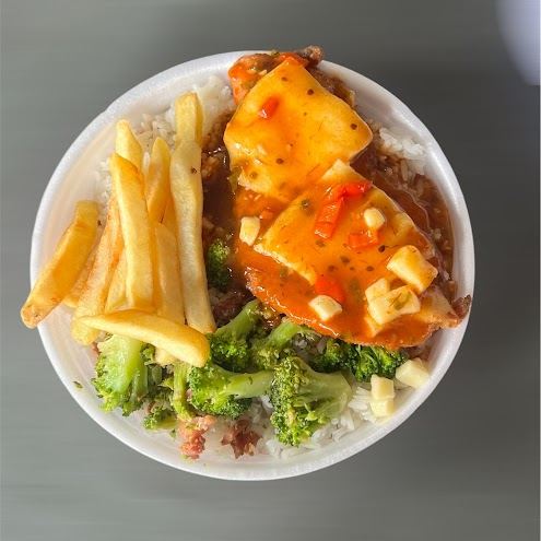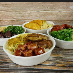 Arroz, Feijão, bife acebolado e batata frita e um refrigerante de 220ml gratís.