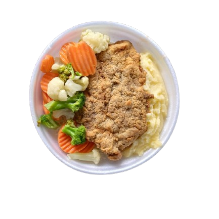 Delicioso Filé de frango empanado sequinho e crocante ,acompanha Arroz Branquinho bem temperado e Batata Fritas.Serve bem 1 pessoa Aprox 500gr