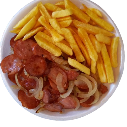 Deliciosa Marmita de Calabresa acebolada com fritas,acompanha Arroz Branquinho e Batatas fritas.(Feijão somente comprado como adicional)Serve muito bem 1 pessoa,Aprox 500 Gr