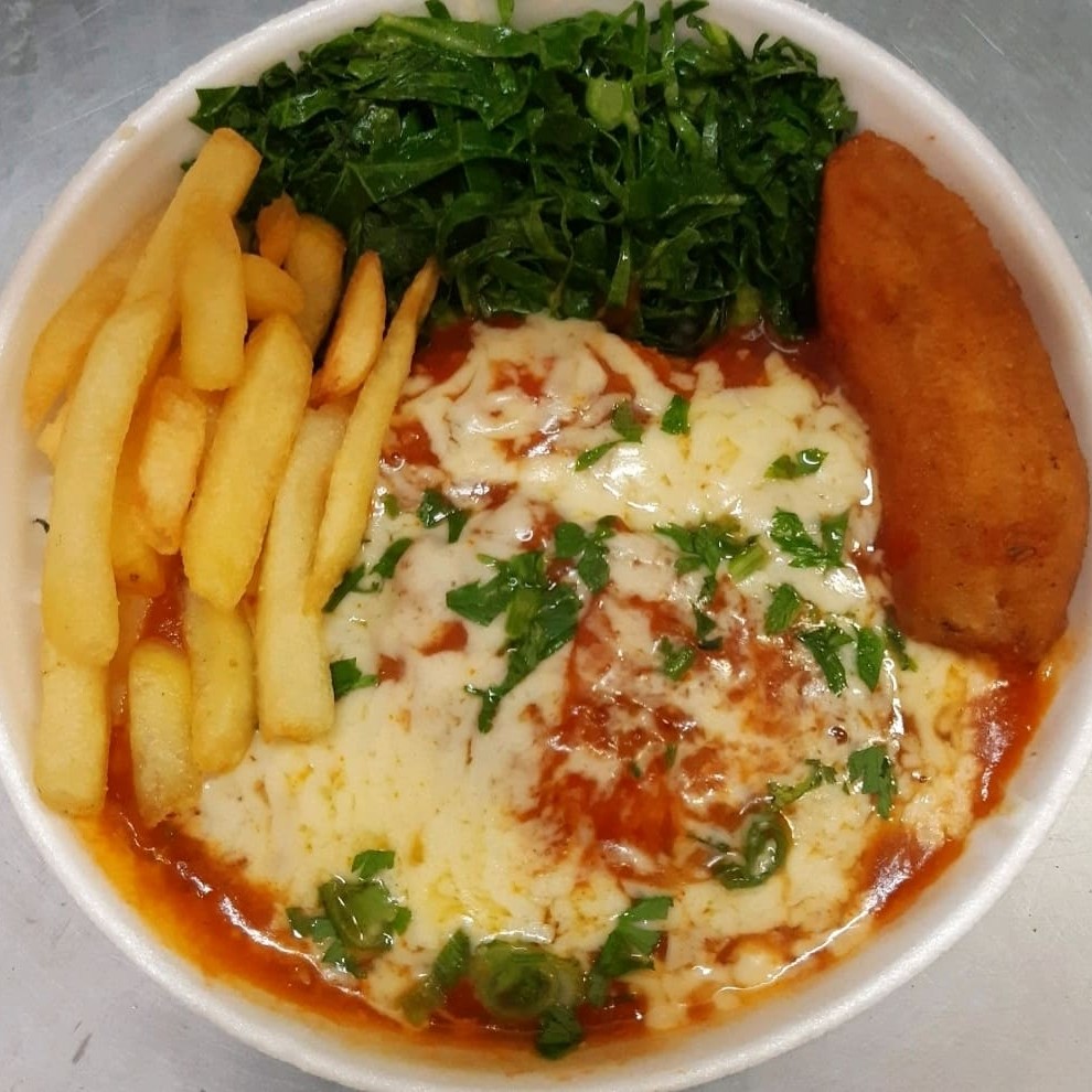 Um clássico irresistível! Nosso segredo começa com um filé Peito de Frango generoso e macio, cuidadosamente empanado e frito até atingir uma crosta dourada e crocante. Ele é então coberto por nosso Molho de Tomate Rústico, cozido lentamente e temperado com manjericão fresco, e finalizado com uma farta camada de Mussarela de alta qualidade, gratinada no ponto perfeito. O resultado? Uma explosão de texturas e sabores que derrete na boca.