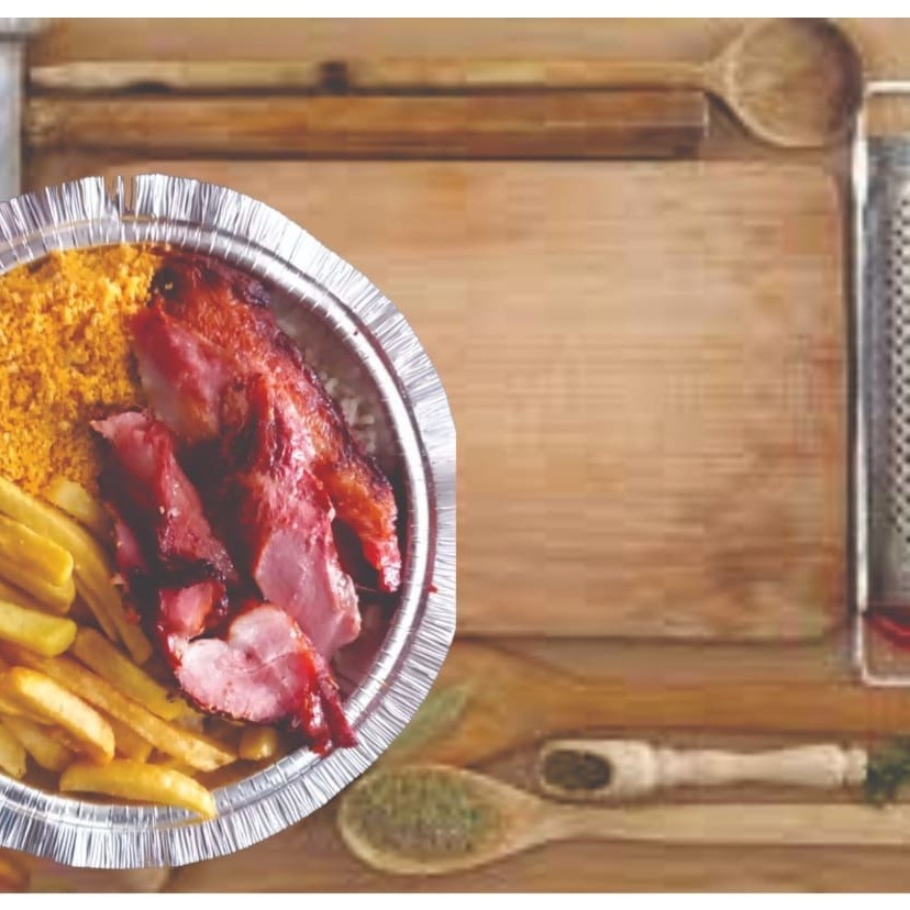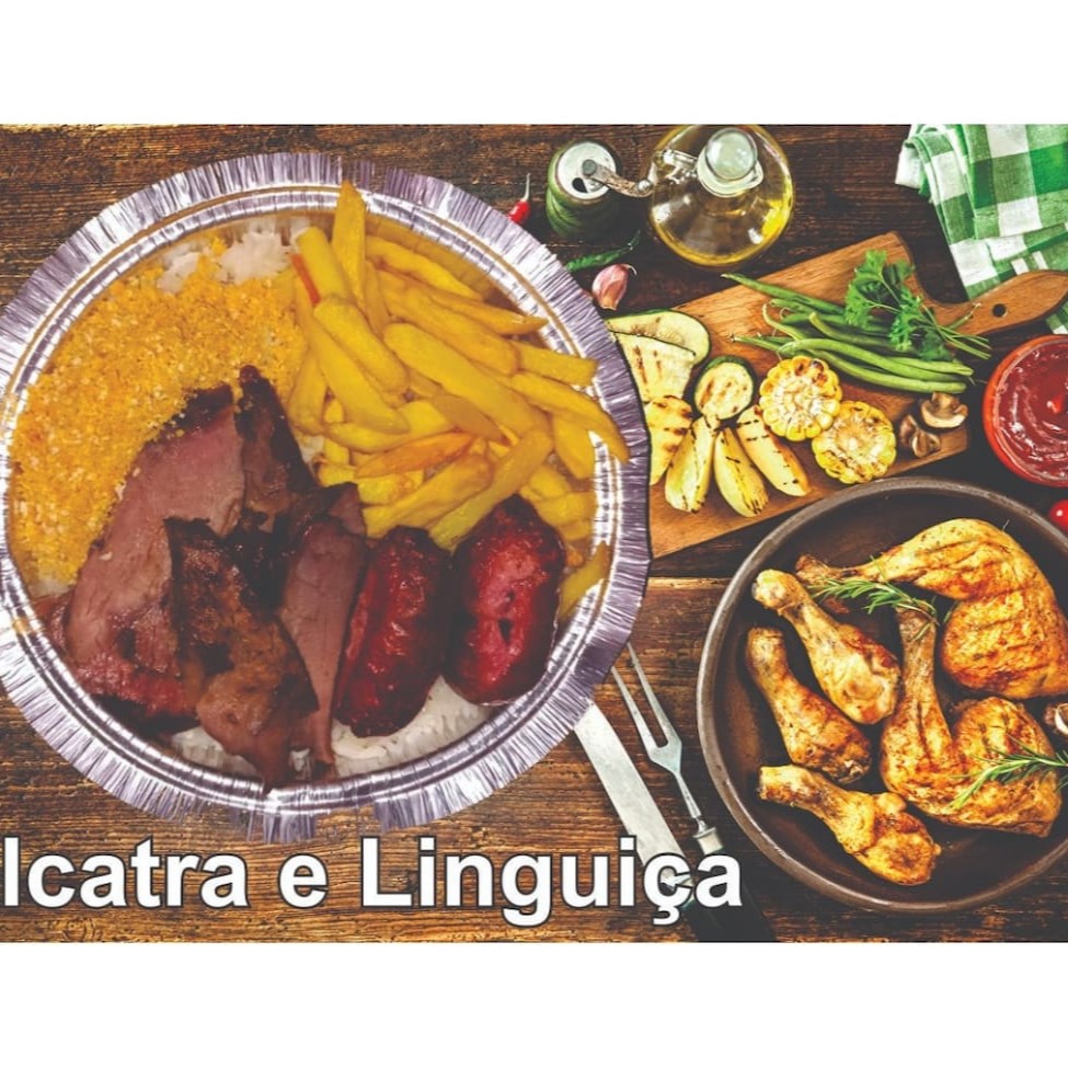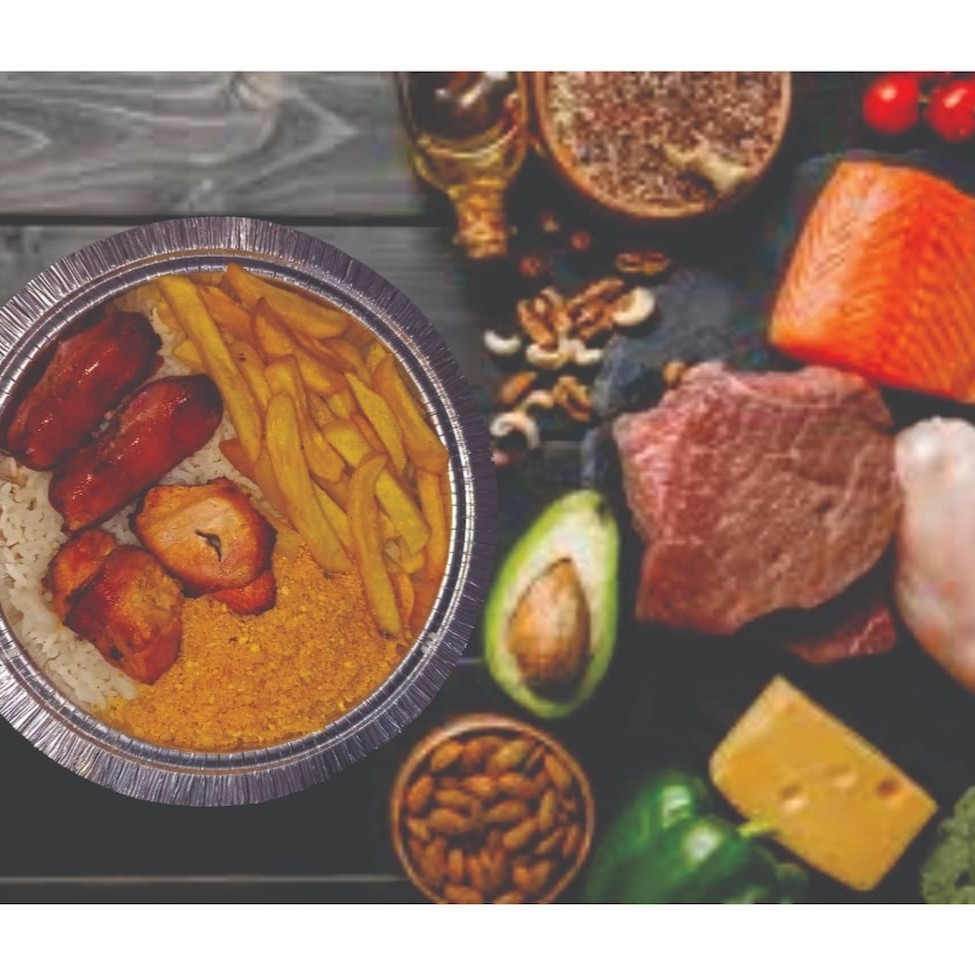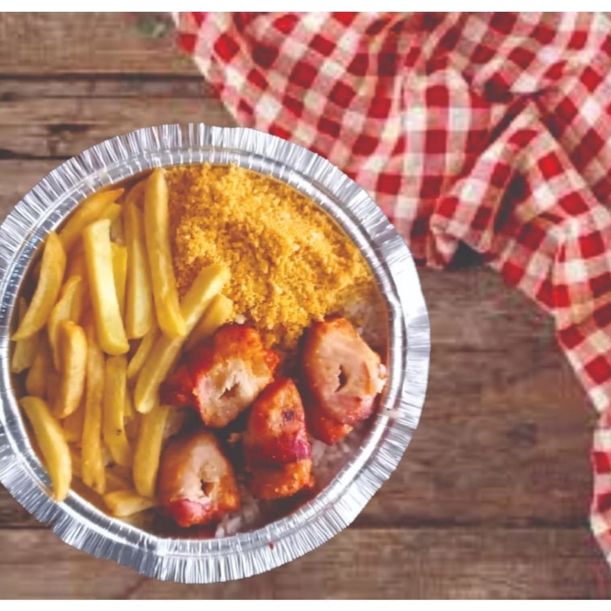 acompanha arroz feijao batata fritra farofa 2 linguiças e 2 medalhao de frango