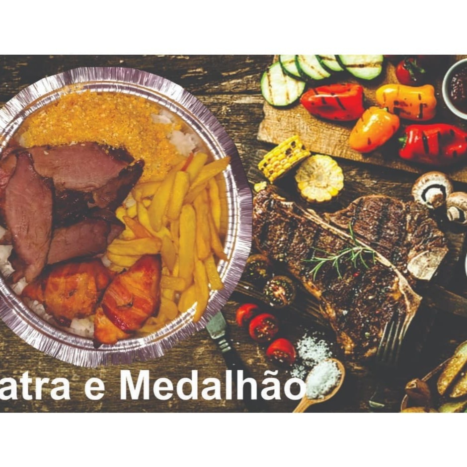 arroz feijao batata frita farofa alcatra e medalhao de frango