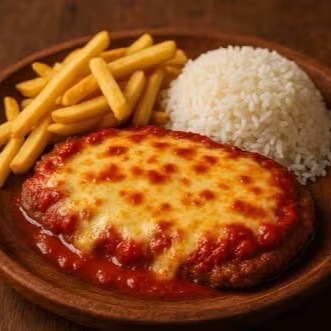 Acompanha: Arroz Soltinho, feijão fresquinho, Farofa Especial da Casa e Batata Frita.