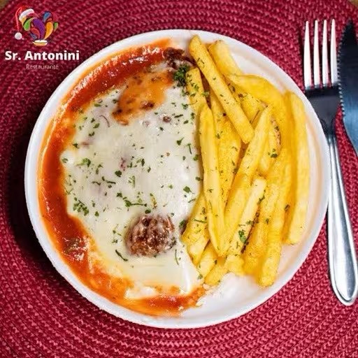 Duas deliciosas parmegianas de filé de frango, arroz, feijão, batata frita, farofa especial da casa.