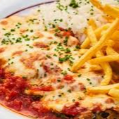 Bife à Parmegiana c/ Arroz + Fritas - (Serve Muito Bem 1 Pessoa)