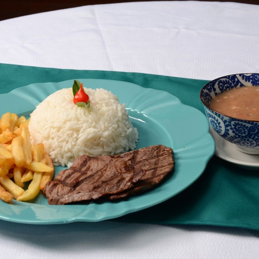 Acompanha arroz, fritas, feijão e vinagrete. Executivo