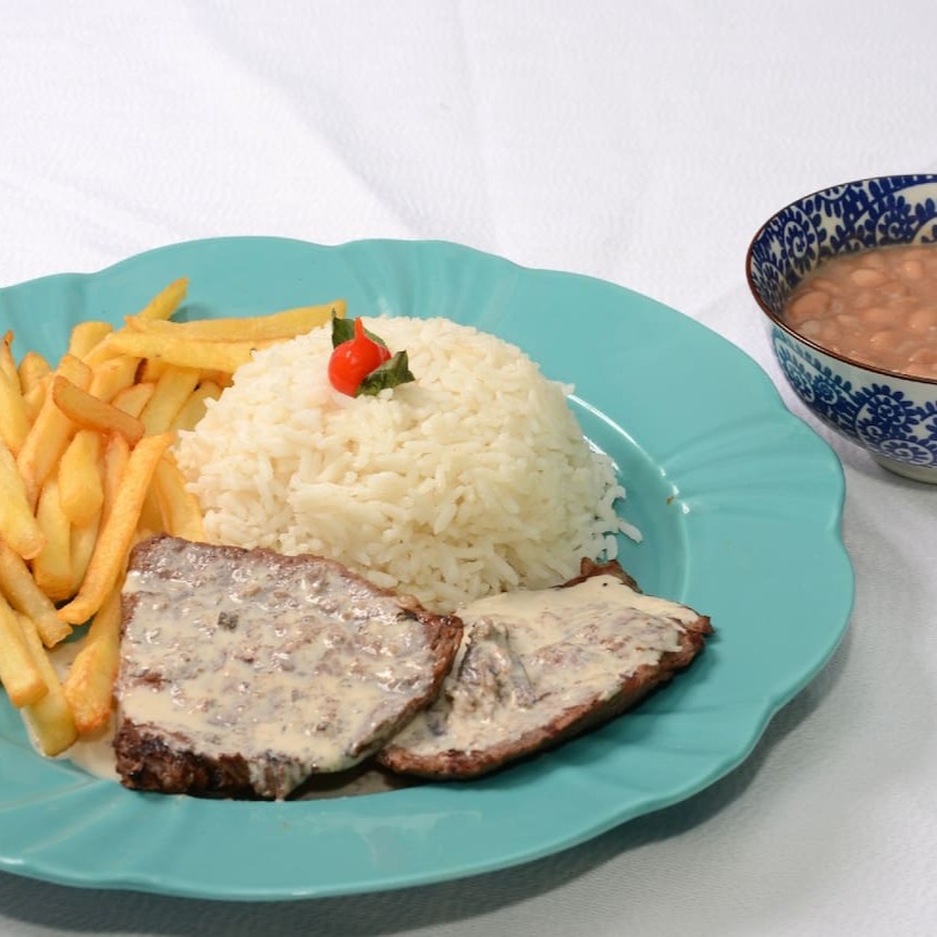 Acompanha arroz. Feijão e fritas