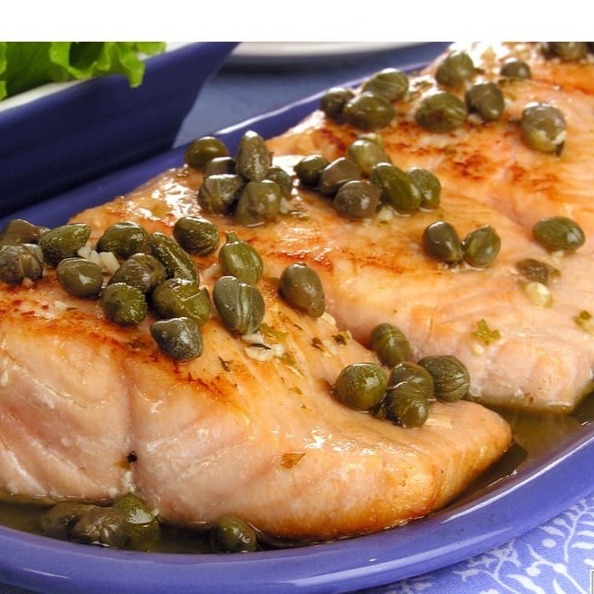 Salmão Grelhado Ao Molho De Alcaparras Com Champignom