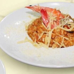 Camarões intercalados e cobertos com muçarela. Acompanha arroz à grega e batata palha.