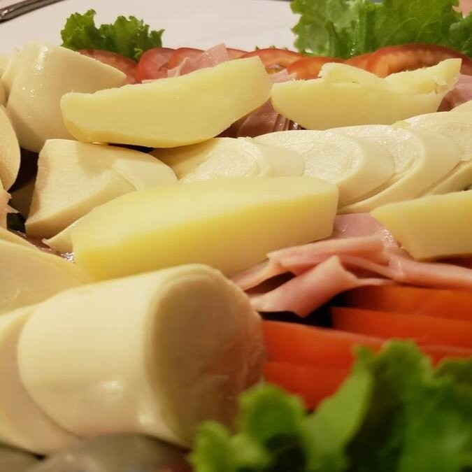 Alface, tomate, palmito, batata, ervilha, presunto, ovo, brócolis, vagem, cenoura e couve-flor.