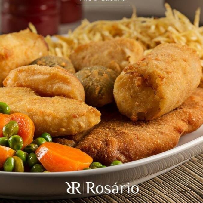 File recheado a milaneza com mucarela e presunto acompanha banana a milaneza ervilha e cenoura na mantega arroz branco e batata palha