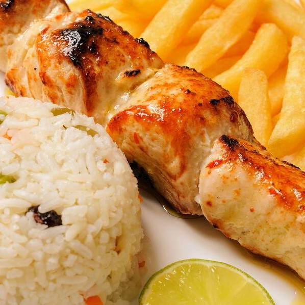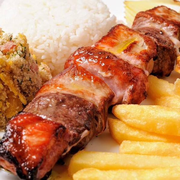 Filé mignon, lombo, linguiça, bacon e cebola. Acompanha arroz, farofa, fritas e vinagrete