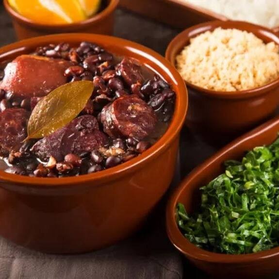 Marmita de Feijoada Completa! A mais tradicional das delícias brasileiras! Feijão preto cozido lentamente com carnes selecionadas, garantindo sabor marcante e aquele toque caseiro irresistível. Acompanha couve refogada, torresmo crocante, vinagrete fresquinho e farofa dourada — um prato completo, cheio de aroma, textura e tradição!