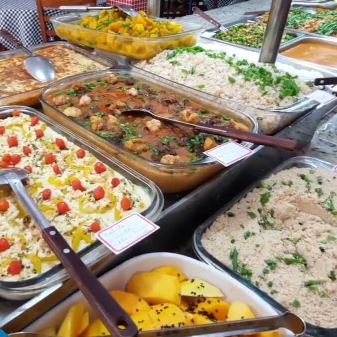 acompanhamento arroz soltinho, feijão fresquinho e acompanhamentos do Dia. Uma refeição completa, caseira e cheia de sabor para matar a fome com prazer!